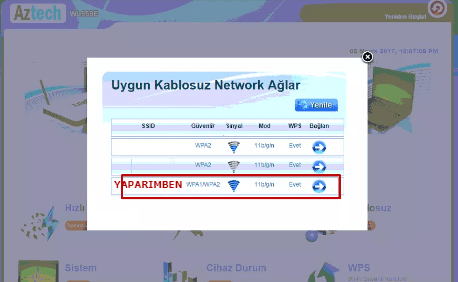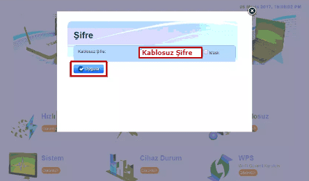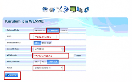 - Kablosuz Şifre: Bölümüne ana modemimizin kablosuz şifresini yazıyoruz.
