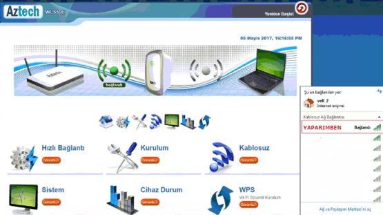 Aztech WL559E Wireless-N Repeater (Sinyal Artırıcı) ‘nın kurulumunu gerçekleştirdiniz. Ana modeminizin sinyal alanı içerisinde istediğiniz alana kurulumunu yaparak modem çekim alanını genişlete bilirsiniz.