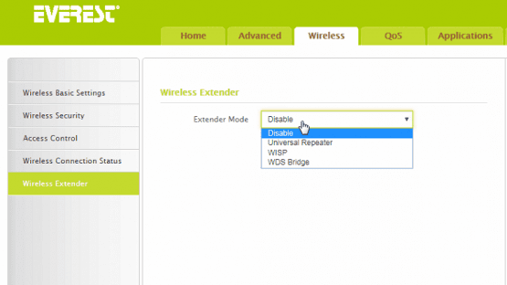 sol tarafta yer alan wireless Extender seçeneğine tıkladıktan sonra açılan sayfada extender mod(genişletici mod)kısmına tıklıyorsunuz.