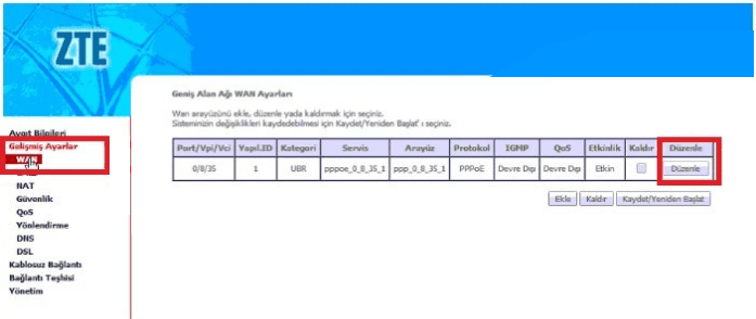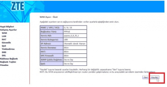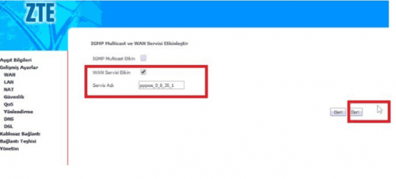 • WAN Servisini Etkin işaretli olması gerekiyor.
